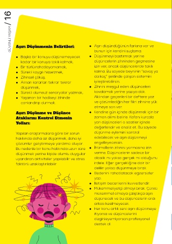 • Başka bir konuyu düşünemeyecek • Aşırı düşündüğünün farkına var ve